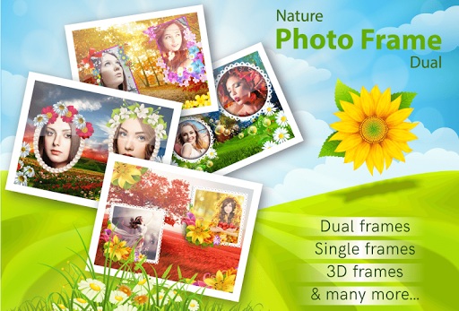 Sama seperti aplikasi sebelumnya, dimana Nature Photo Frames Dual juga mengangkat tema pemandangan alam yang tentu merupakan pilihan tepat untuk dijadikan sebagai bingkai foto.Bedanya, aplikasi yang satu ini menyediakan lebih banyak pilihan frame, salah satunya 3D frames yang akan merupakan bingkai foto dengan tampilan 3 dimensi.