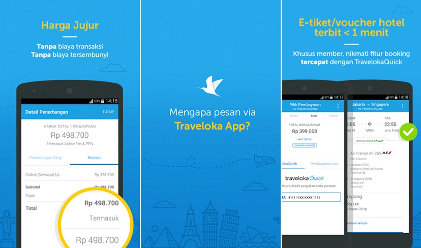 Tidak sekedar murah, harga yang ditawarkan oleh Traveloka adalah jujur. Pengguna tidak lagi mengkhawatirkan biaya tambahan yang perlu dibayarkan sesudah melunasi pembayaran tiket pesawat atau hotel. Karena harga tersebut sudah termasuk dalam biaya pajak dan lainnya.