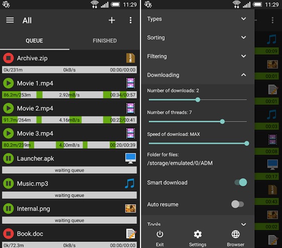 Melalui aplikasi ini, pengguna bisa mendownload beragam jenis file dan mampu mendownload hingga 8 file secara bersamaan. Menariknya, pengguna di beri pilihan untuk menempatkan posisi iklan saat menggunakan aplikasi buatan zer0lab ini. Keren banget kan?