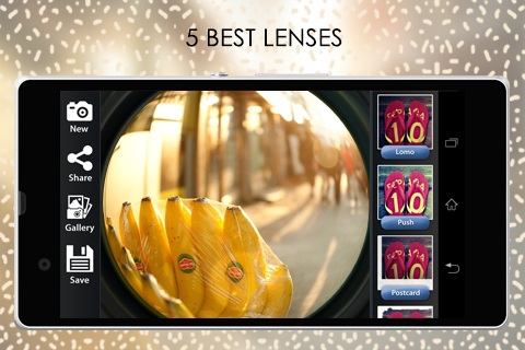 Untuk efek lensa kameranya sendiri, ia menyugukan 7 macam lensa yang cukup menarik, seperti Divided lenses, FishEye, Lomo, dan berbagai lensa unik lainnya.