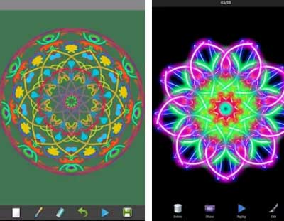 Pengguna bisa menggunakan berbagai kuas untuk menggambar apapun termasuk kaleidoskop yang terlihat indah seperti gambar di atas berkat warna-warna terang dan neon yang ada di game ini. Ada sebuah fitur yang menarik perhatian saya yaitu fitur yang bisa memutar lukisan kita seperti sebuah film.