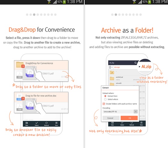 Solid Explorer membantu kamu dalam membuka atau mengekstrak berkas dalam bentuk ZIP, 7Zip, RAR. Aplikasi ini juga menyediakan penyimpanan manager dengan Dropbox, Google Drive, Mediafire, dan lainnya.