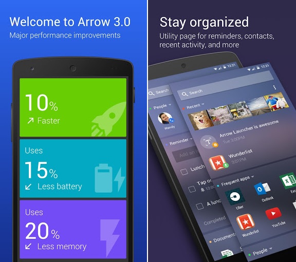 Arrow Launcher dikemas dengan tampilan yang sederhana yang juga mengutamakan kinerja yang cepat, ringan, dan efisien. Tidak seperti launcher lainnya, Arrow memberikan penataan yang lebih menarik dan mengagumkan.