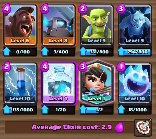 Dengan memiliki jumlah hitpoints yang cukup tebal, kamu bisa mengisi kartu-kartu lainnya untuk mem-backup Giant di belakangnya, seperti Archers, Ice Wizard, maupun Mega Minion. Selain itu, kamu juga bisa mengandalkan kekuatan kartu Lighting guna menghancurkan tower pertahanan ataupun spawn deck yang mengganggu.