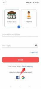 2. Kalau kamu sudah memiliki akunnya, bisa langsung “login“, ya. Namun jika kamu belum mendaftarkan akunnya, klik tombol “daftar” yang berada di pojok kanan atas.