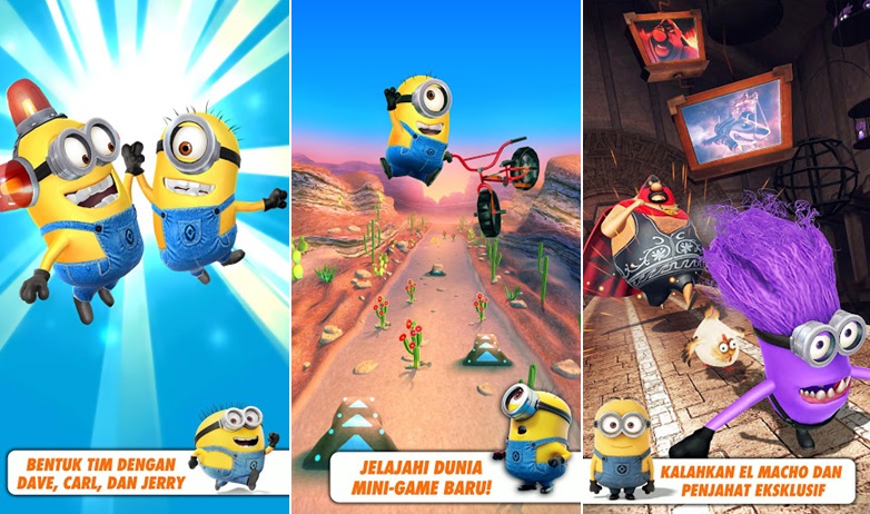 Nantinya kamu harus menyelesaikan misi atau mini games yang ada bersama teman minionmu, di antaranya ada Carl, Jerry dan Dave. Berbagai misi seru dan kocak akan kamu rasakan dalam game ini, contohnya seperti mengendarai Fluffy Unicorn atau Roket Gru.