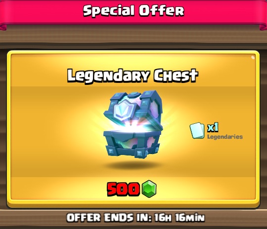 Nah, untuk mendapatkan kotak peti yang berisikan sebuah kartu legendary, pemain tentunya tak bisa memperolehnya secara gratis. Players membutuhkan 500 gems untuk dapat membeli Legendary Chest tersebut.