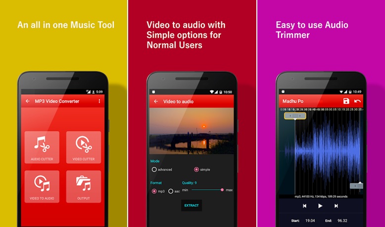 Selain melalui website, kamu pun bisa meng-convert sebuah video menjadi audio menggunakan sebuah aplikasi android bernama Video to MP3 Converter. Aplikasi besutan accountlab ini tak hanya memiliki fungsi sebagai video converter saja, tetapi kamu juga bisa memanfaatkannya sebagai audio dan video cutter.