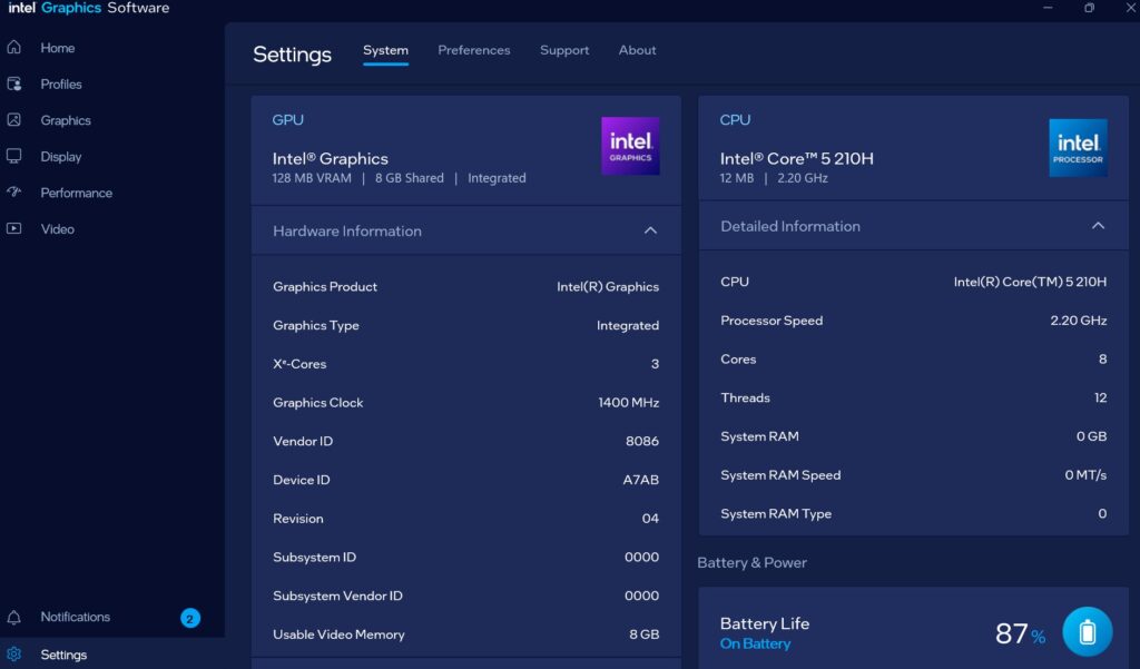 Untuk urusan grafis, laptop ini masih pakai Intel® UHD Graphics dengan 48 EUs dan clock sampai 1.4 GHz. GPU-nya pakai memori bersama dari RAM, yang bisa sampai 8GB.